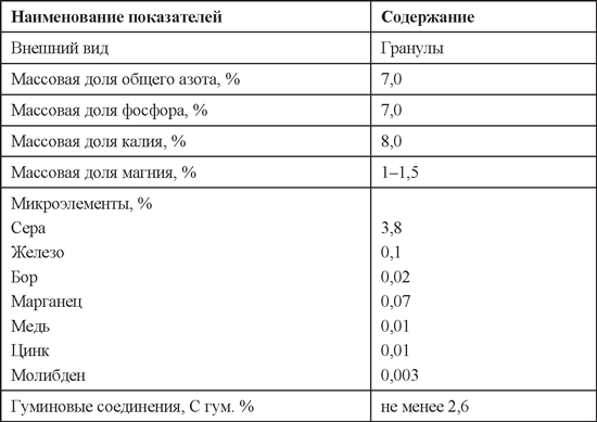 Показатели качества удобрения «Универсальное» сведены в следующую таблицу: