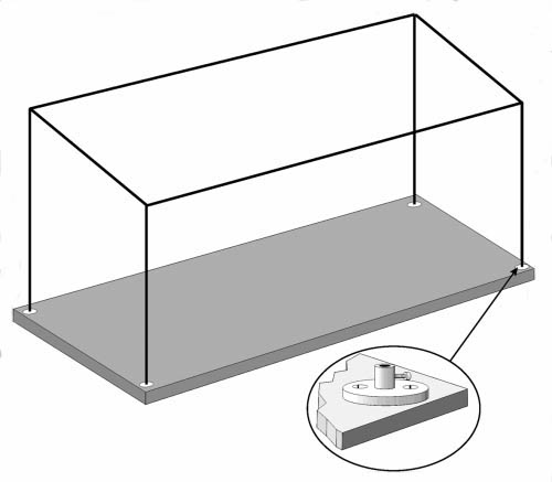 Горшки с кактусами удобно устанавливать группами на специальных поддонах. Поддоны не только собирают лишнюю воду при поливе, но и позволяют легко перемещать растения. Учитывая, что ножки горшков обычно делаются небольшими, при поливе важно, чтобы вытекающая в поддоны вода не сомкнулась с донцами горшков и не привела к застойному увлажнению почвы. Этого можно избежать двумя способами: увеличить высоту ножек горшков или вложить в поддон металлическую решетку с отогнутыми вниз ножками. В последнем случае для изготовления решетки очень удобна оцинкованная сварная металлическая сетка для изгородей. При установке решетки отпадает необходимость сливать или отсасывать воду из поддонов в случае перелива (см. илл. 4, 5 и 6 на цветной вклейке, «Группа кактусов»).