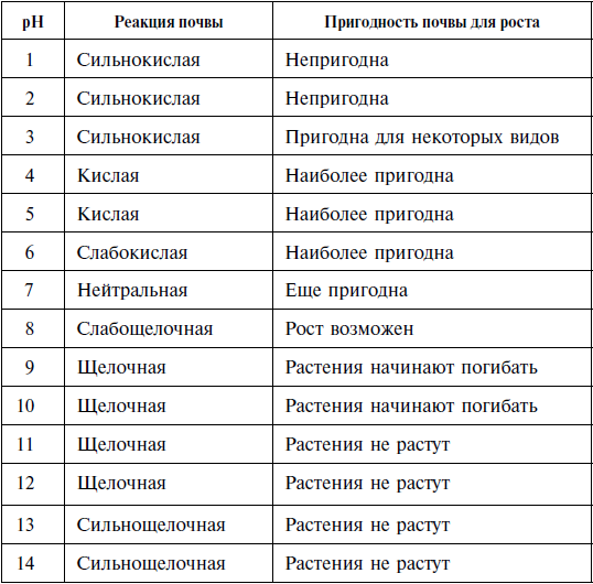 Таблица 1. Пригодность почвы для кактусов в зависимости от pH (по Haage, 1980)
