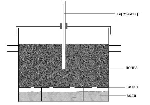 Очень удобный и простой прибор для стерилизации почвы паром показан на рис. 1 (Brehme, 1987). Для изготовления такого прибора подойдет, например, паровая кастрюля, в которой оставляют в качестве дна одну секцию с отверстиями. На дно с отверстиями дополнительно кладут мелкую нержавеющую металлическую сетку, чтобы почва не могла проваливаться вниз. Термометр, имеющий шкалу более 100 ° С, на резиновой прокладке вставляют через отверстие в крышке. В нижнюю часть кастрюли наливают воду так, чтобы она не касалась почвы, и ставят на огонь. Температура почвы за счет выделяющегося при кипении воды пара в конце нагрева должна составлять 100 ° С. После этого оставшуюся воду лучше слить. Кастрюлю с почвой охлаждают при закрытой крышке.